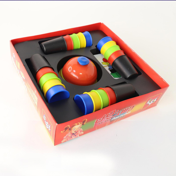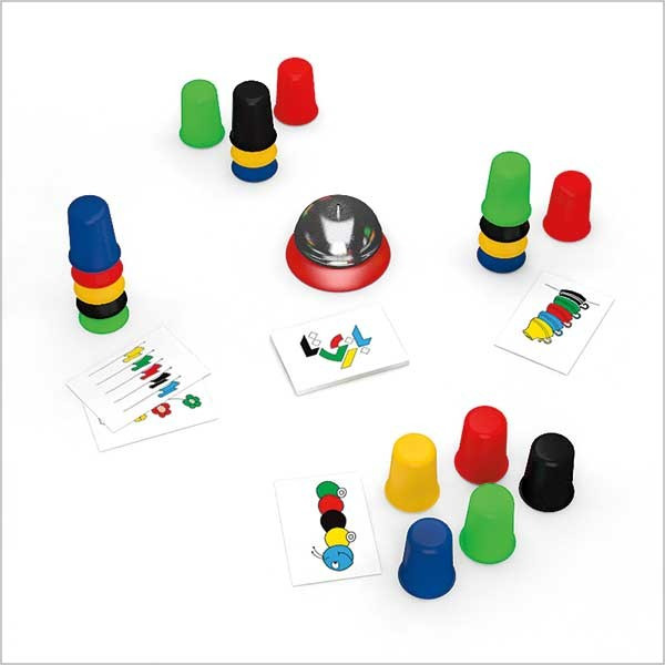 دستچین ۲۴ تا کارت با رنگها و تصاویر متفاوت داره که به پشت مقابل همهی بازیکنا قرار داره. حالا کارتها رو به ترتیب نشون میدین و بازیکنا بر اسا رنگ و تصویر کارت، باید با ۵ لیوان رنگی که جلوشون هست اون تصویر رو بسازن.