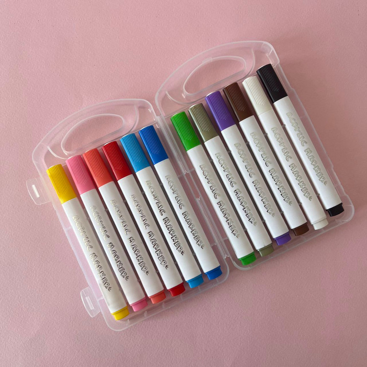 ماژیک 12رنگ اکرولیک پوشش دهی عالی در 12رنگ جذاب و زیبا. برای هنرمندان، دانشآموزان و علاقهمندان به نقاشی و طراحی است. این ماژیکها با رنگهای زنده، پوششدهی عالی و جوهر با کیفیت بالا تولید شدهاند. هر ماژیک دارای نوک نرم و مقاومی است که برای جزئیکاری و سطوح بزرگ مناسب میباشد