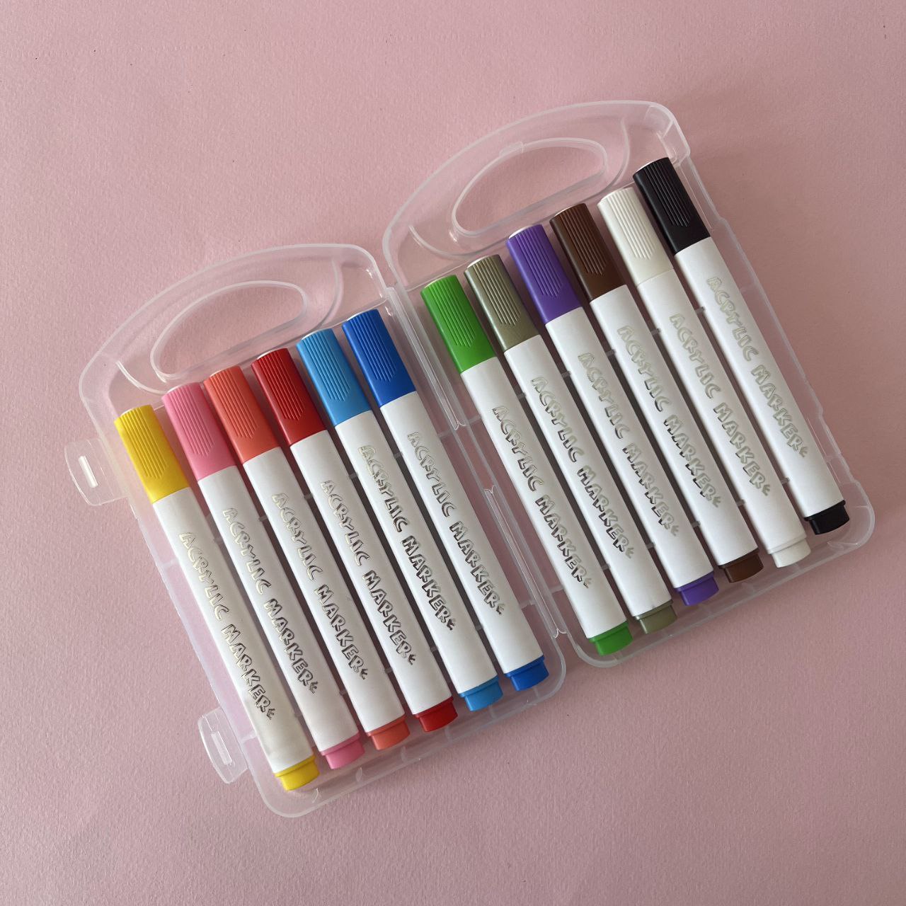ماژیک 12رنگ اکرولیک پوشش دهی عالی در 12رنگ جذاب و زیبا. برای هنرمندان، دانشآموزان و علاقهمندان به نقاشی و طراحی است. این ماژیکها با رنگهای زنده، پوششدهی عالی و جوهر با کیفیت بالا تولید شدهاند. هر ماژیک دارای نوک نرم و مقاومی است که برای جزئیکاری و سطوح بزرگ مناسب میباشد