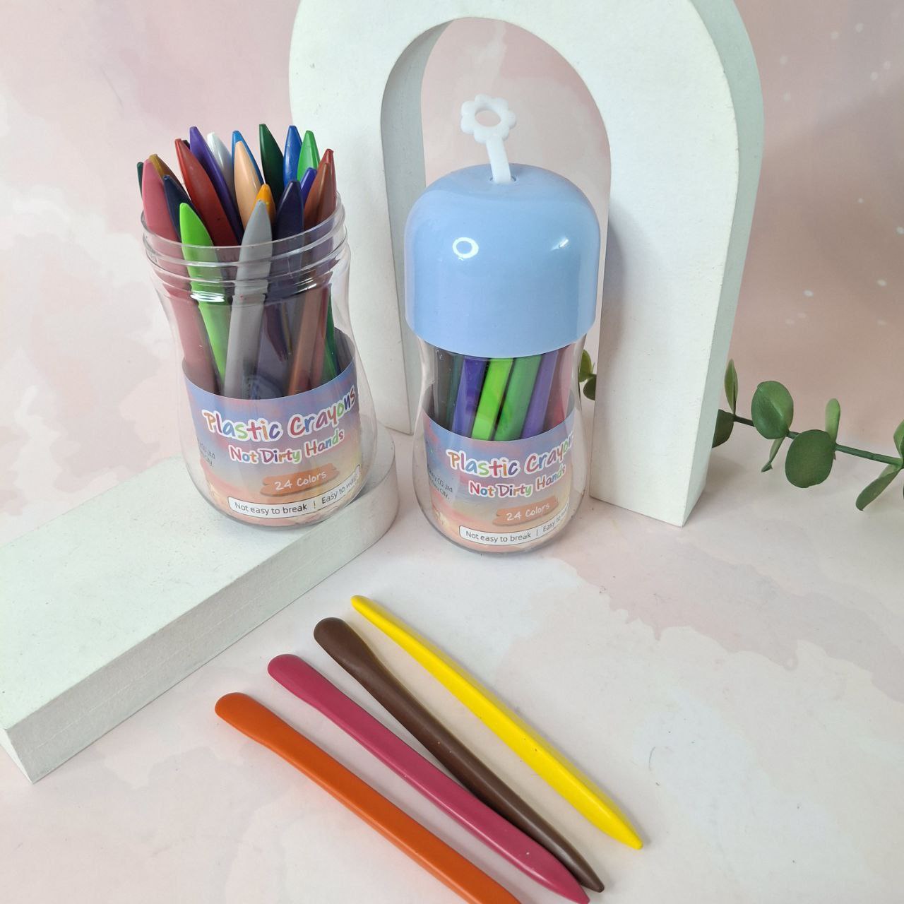 به دست کودک رنگ پس نمیده رو فرش و موکت و لباس رنگ پس نمیده روی دیوار خیلی کم رنگ میده و براحتی با دستمال مرطوب پاک میشه جنسش از موم طبیعی و شیمیایی نیست 👏 تو هر بسته 24 رنگ داره ..... رنگش مثل مدادرنگی پررنگ و خیلی نرم ...