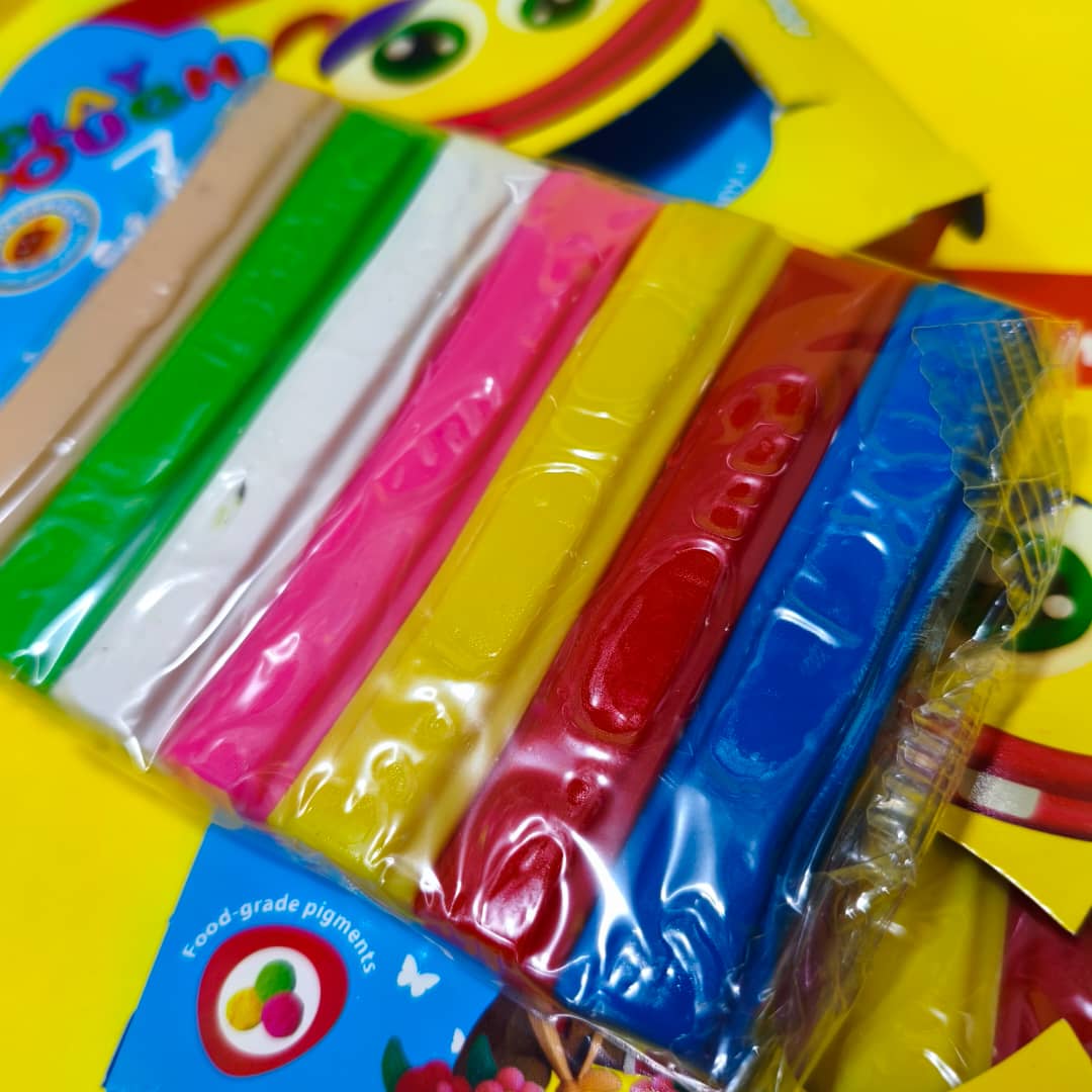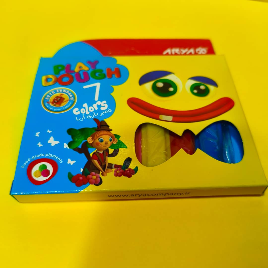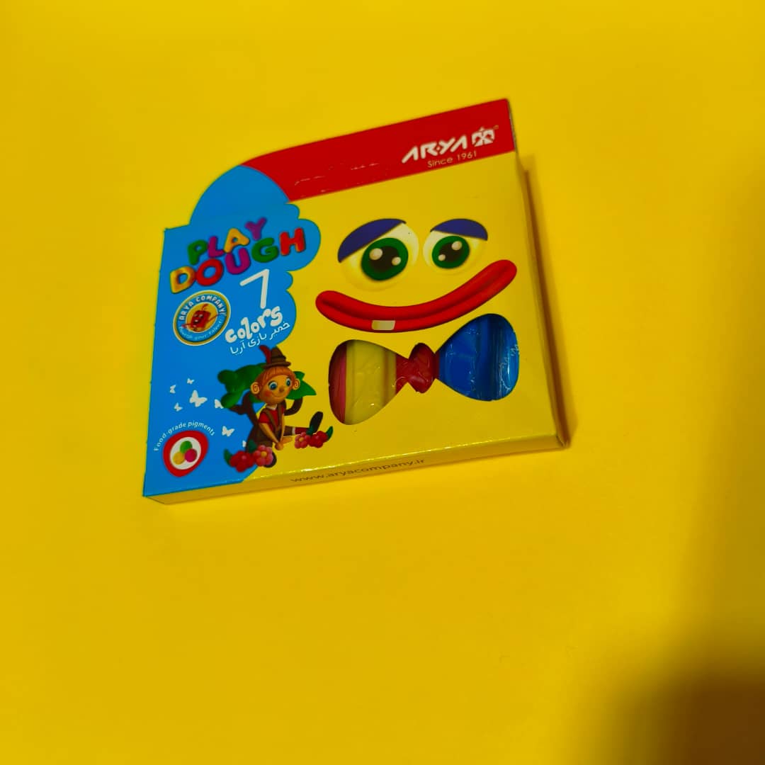 خمیر بازی 7رنگ از برند محبوب آریا جعبه مقوایی مناسب کودکان برای ایجاد انگیزه ساختن و خلاقیت دست ورزی متمرکز شدن روی کارای خود
