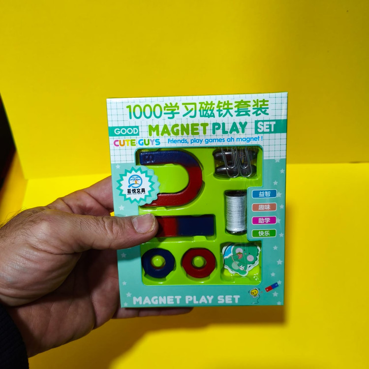 این پک، حاوی آهنرباهایی به شکل نعل اسبی، دایره ای، مستطیلی و مگنت های بیضوی است که به دانش آموز انواع مختلف آهنربا را نمایش می دهد. همچنین با رنگ بندی مجزا، قطب های آهنربا را آموزش می دهد و به دانش آموز یاد می دهد که قطب های همرنگ یکدیگر را دفع کرده و قطب های با رنگ مخالف همدیگر را جذب می نمایند.