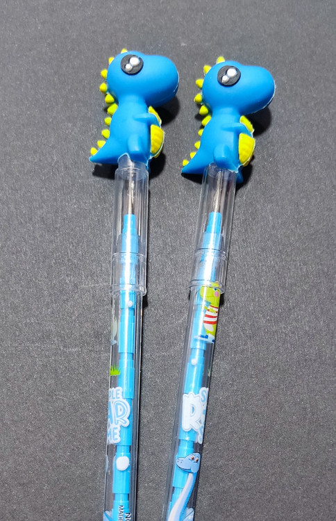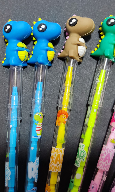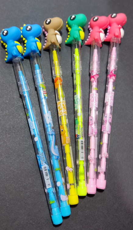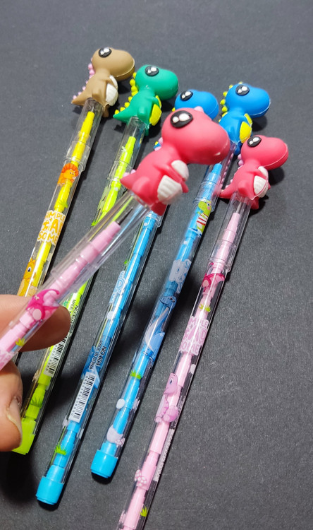 مداد فانتزی فشنگی با طرح دایناسور دارای 4 رنگ بدنه آبی قهوه ای سبز صورتی هست که همراه این محصول می توان نوک یدک این مداد را نیز تهیه کرد و بدون نیاز به تراشیدن یا شکستن نوک به نوشتن ادامه داد